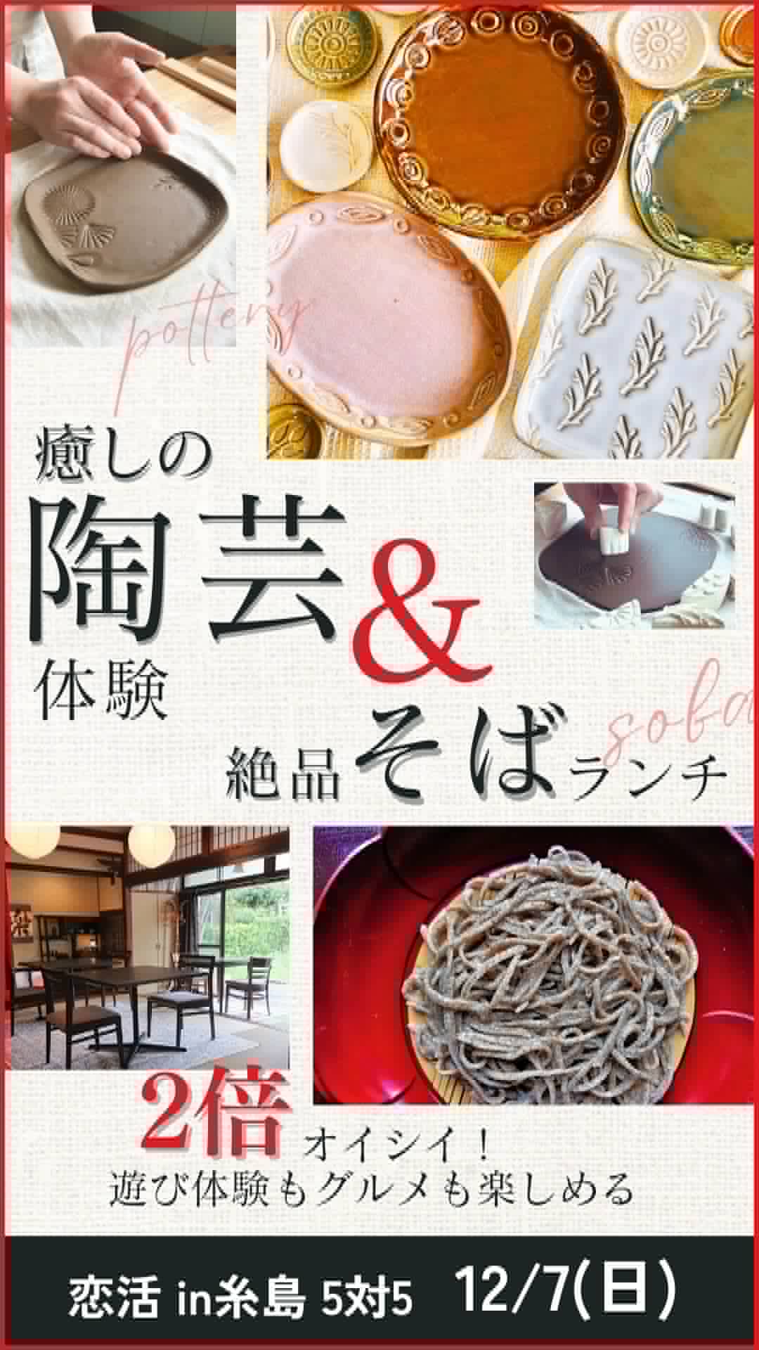 開催日2025年12月07日(日) 応募締切2025年11月27日(木) 参加資格28~43歳以下の独身者 募集人数男女各5名 ※最低遂行人数4対4の合計8名会場:そば打ち楽土・工房わらし