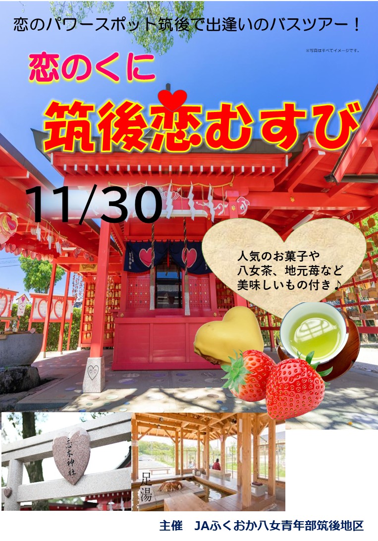 開催日2025年11月30日(日) 応募締切2025年11月19日(水) 参加資格25~41歳の独身者 募集人数女性のみ6名会場:JAふくおか八女筑後地区センター
