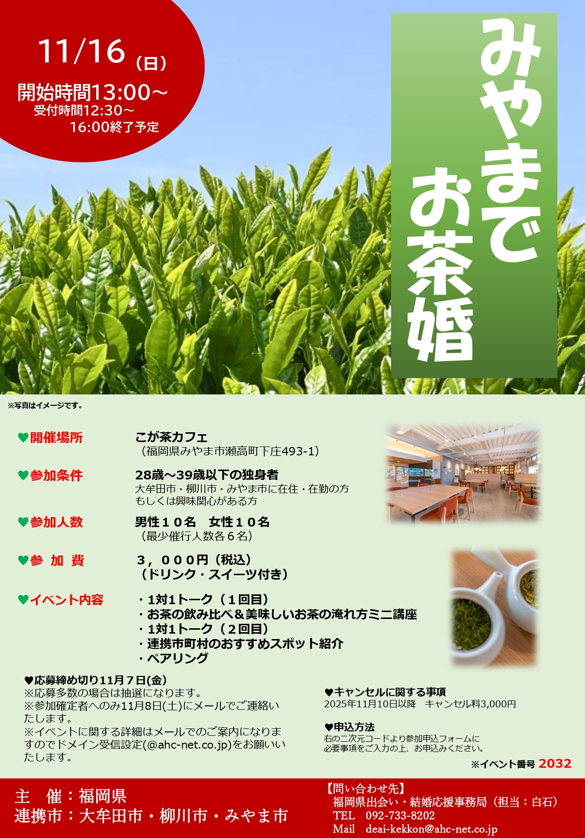 開催日2025年11月16日(日) 応募締切2025年11月07日(金) 参加資格28歳~39歳以下の独身者 募集人数男女各10名(最少催行男女各6名)会場:こが茶カフェ