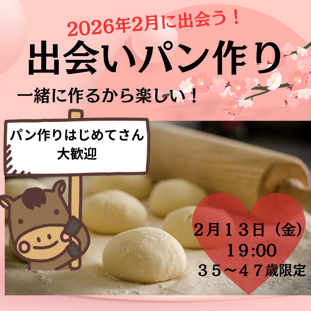 開催日2026年02月13日(金) 応募締切2026年02月06日(金) 参加資格35~47歳の独身男女 募集人数男女各6名(最少催行人数各3名)会場:料理教室 スマイルスマイズ