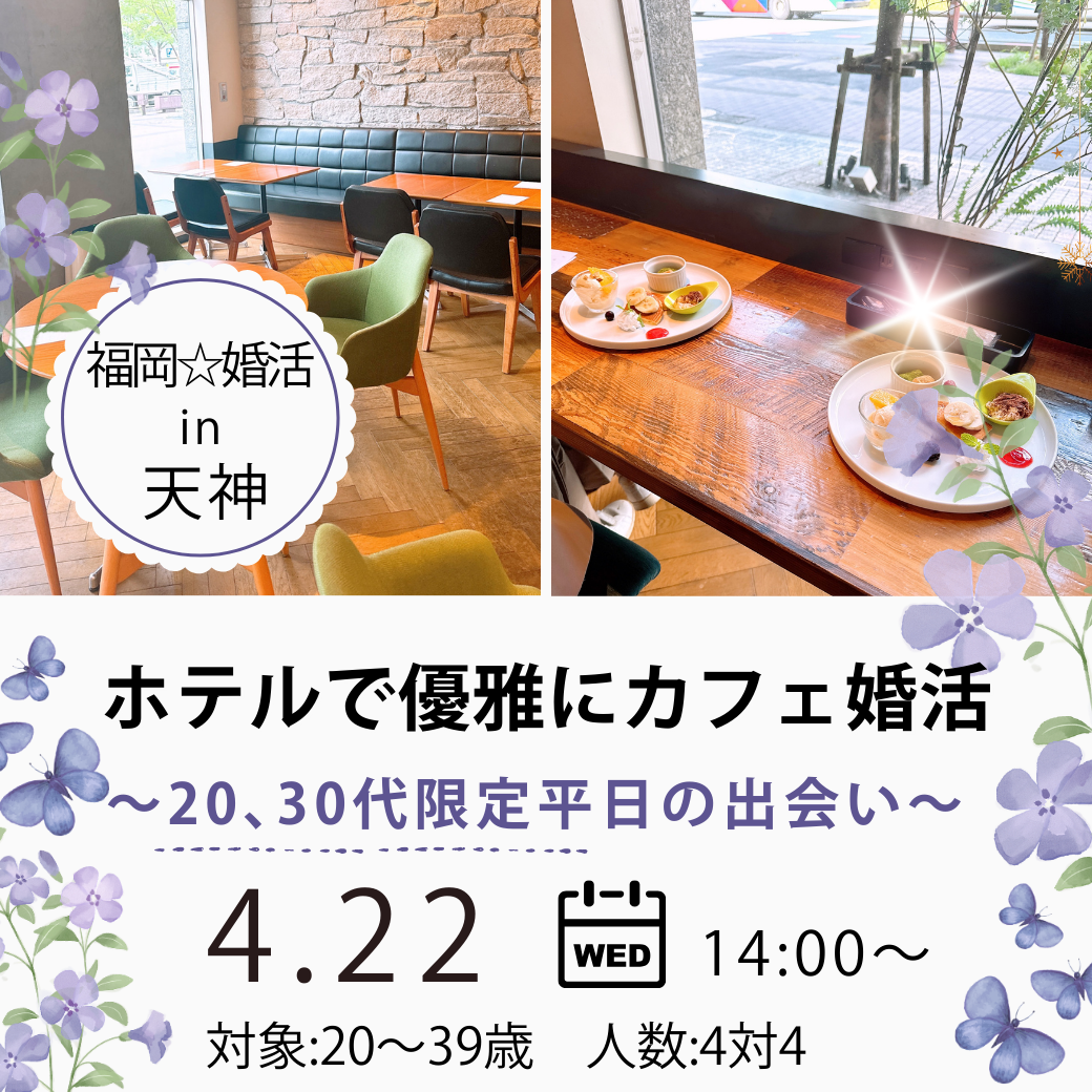 開催日2026年04月22日(水) 応募締切2026年04月13日(月) 参加資格20~39歳以下の独身者 募集人数男女各4名(最少催行人数男女各3名)会場:リッチモンドホテル福岡天神カフェ