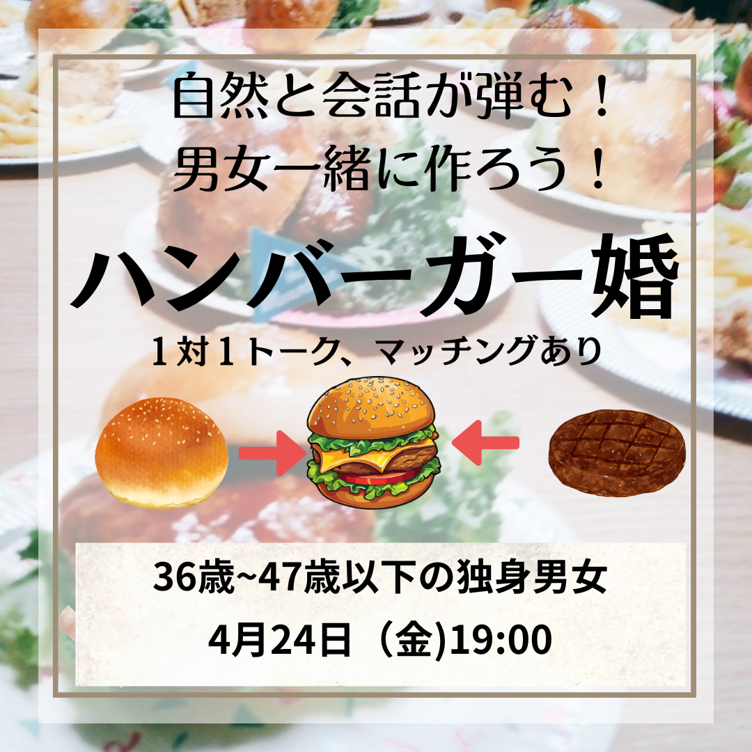 開催日2026年04月24日(金) 応募締切2026年04月17日(金) 参加資格36歳~47歳以下の独身者 募集人数男女各7名(最少催行人数男女各3名)会場:料理教室 スマイルスマイズ