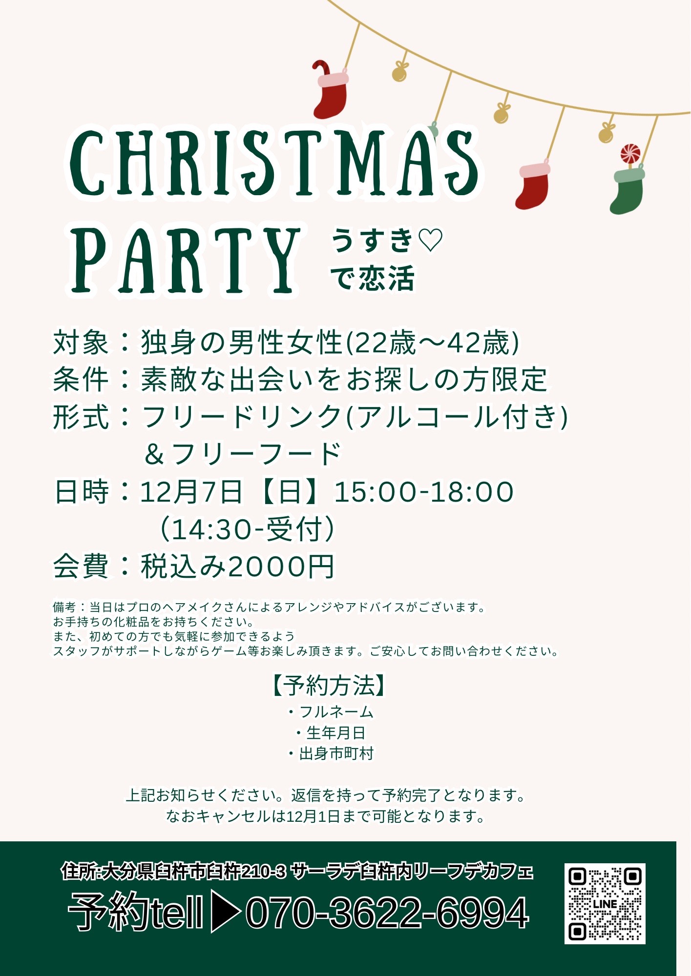 Xmas直前♪臼杵のおしゃれなカフェでの出会えるXmasパーティ